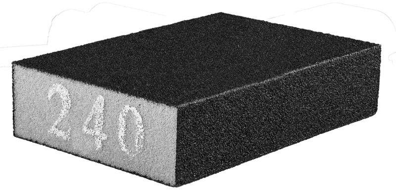 Csiszolószivacs GRAPHITE (cikkszám: 55H921) mérete 70 x 25 x 10 mm finomsága 240. Rendeltetése: befejező csiszoláshoz. Kiválóan alkalmas kézi csiszolásra, glettek, gipszek, festékek, műanyagok, fa, fém, vagy lakkfelületek kézi csiszolására és simítására. Egyaránt alkalmas száraz és nedves munkára. A szivacs négy oldalát szemcse borítja, puha szerkezete pedig garantálj