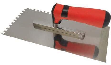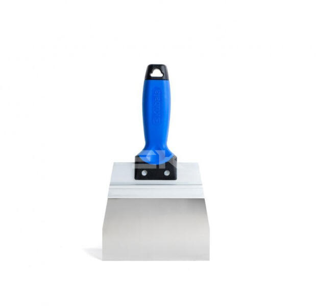 Építőipari befejező munkákhoz - rozsdamentes, saválló acél, vastagsága: 0,5mm - ergonómikus, profilozott kétkomponensű (G-15) puha fogantyú - alumínium profilba ágyazott munkafelület