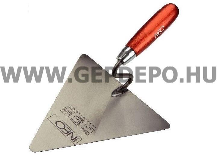 A NEO háromszögű kőműveskanál ragasztóhabarcsok és más habarcsok felvitelére szolgál. Az 1,2 mm vastag, nagy rugalmasságú, edzett nemesacél lap hosszú élettartamot biztosít. A fa markolat jól fekszik a tenyérben, növelve a munkavégzés kényelmét. A NEO márka a professzionális igényeket is kielégíti. Főbb jellemzők: Neo kőműves kanál Edzett nemesacél lap Háromszö