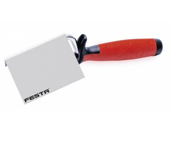 FESTA saroksimító kanál, rozsdamentes acélból, két komponensű, ergonomikus gumi nyéllel. A sarokkanál kiváló minőségű rozsdamentes acélból készült, vastagsága 1,0 mm, nyele gumi, ergonomikus kialakítású. A simító a falak belső éleinek, sarkainak simítására, beállítására és tisztítására szolgál. Műszaki adatok: Anyaga: Rozsdamentes acél, 1,0mm Mérete: 80x60x
