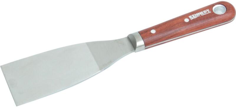 Nagy igénybevételre, átmenő szárral, megeresztett rugalmas acélpengével és polírozott rózsafa nyéllel. Polírozott éles penge festékréteg és tapéta eltávolításához. Penge: 125 x 25 mm
