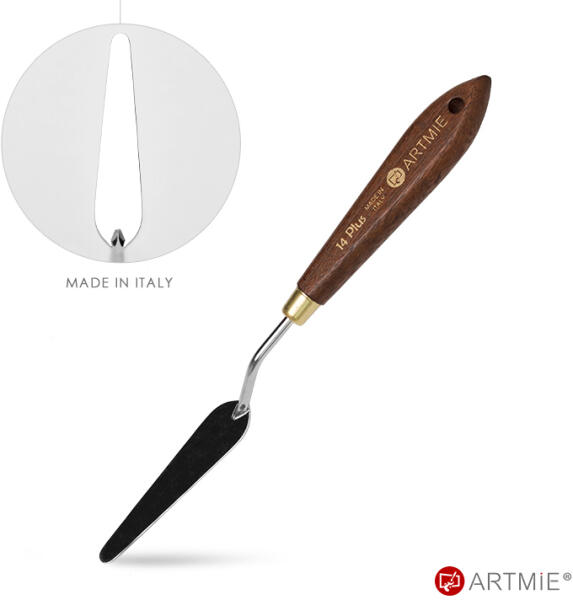 Spakli ARTMIE Plus 014 Olaszországban gyártot ARTMIE festőspaklik egy új kiváló minőségű festőkések különféle típusban. Az új formák széles választéka különféle felhasználásokat tesz lehetővé, a vékony rugalmas pengéktől a kicsi, jól meghatározott részletekig egészen a szélestől a lekerekített élekig és speciális lapát formájú, amely segítségével a fes
