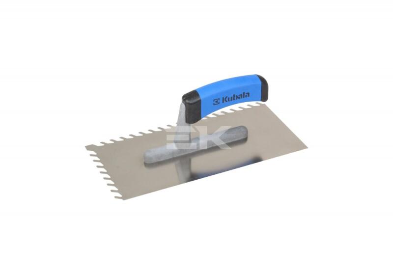 Ragasztóhabarcsok felhordására - biztosítja a burkolólap maximális lefedését ragasztóval - rozsdamentes, saválló acél, vastagsága 0,7 mm - tökéletesen kiegyensúlyozott - ergonomikus, profilozott 2K puha fogantyú poliamid lábon üvegszál hozzáadásával