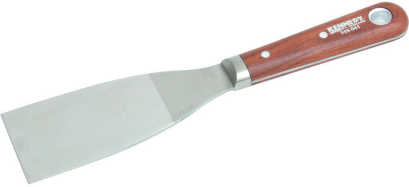 Nagy igénybevételre, átmenő szárral, megeresztett rugalmas acélpengével és polírozott rózsafa nyéllel. Polírozott éles penge festékréteg és tapéta eltávolításához. Penge: 125 x 50 mm