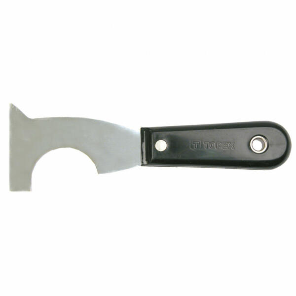 Az univerzális Topex festőspakli alkalmazásra talál felújítási és befejező munkálatok során, pl. gipsz felvitelében, vagy felületekről szennyeződések eltávolításában. A penge polírozott. Markolata erős műanyagból készül. A Topex márka ezermestereknek készül. Festő spakli bevágással, polírozott penge, műanyag nyél
