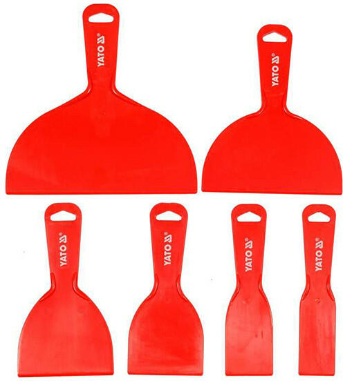 A Yato YT-52740 készlet a következő elemeket tartalmazza: Műanyag kaparók és spaklik (6 darab) : Ezek különböző méretűek és formájúak, és különböző munkákhoz használhatók, például simításra, tisztításra és anyagok eltávolítására. A készlet ideális különféle felületek előkészítéséhez és simításához, például: Festés előtti felületkezelés : A spa