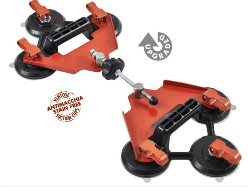 6 foltosodás mentes tapadókoronggal ellátott járólap összehúzó szerszám burkolólapok párhuzamos beállításához. Segítségével a még meg nem kötött ragasztóba ágyazott hidegburkolat anélkül mozgatható, hogy fel keljen szedni. Súly: 4 kg Figyelem! A ragasztóba ágyazott lapmozgatás miatt a habarcsba vákuum okozta légbuborékok keletkezhetnek. Azokon pontokon a járólap,
