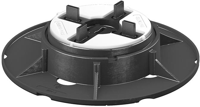 Állítható magasságú szintező talp, csúszásmentes és kopogó hangot szigetelő gumi tömítőgallérral, adott terhelésnek megfelelő vastagságú járólapok, szárazon történő elhelyezésére. Előnyös terméktulajdonságok: Ál lítható magasság tartomány: 25-40 mm Fugaszélesség: 4 mm A termék időjárásálló, saválló és UV álló -40°C-tól +120°C-ig hőálló teljes