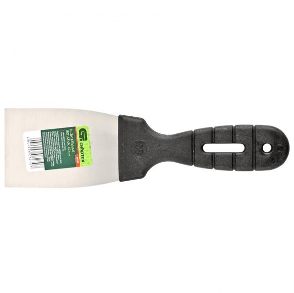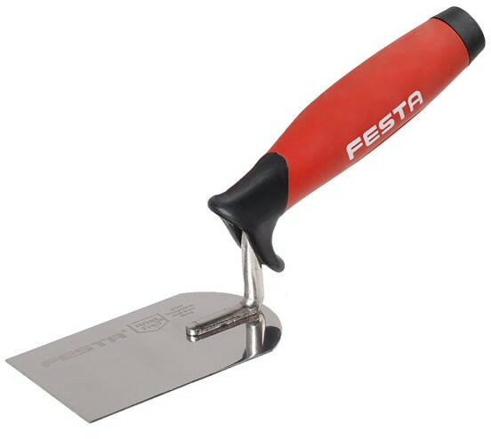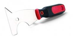 Építőipari befejező munkákhoz - rozsdamentes, saválló acél, vastagsága 0,5 mm - megerősített és tökéletesen egyenes munkaél, eloxált alumínium profilba ágyazásának köszönhetően - ergonomikus és profilozott 2K puha fogantyú