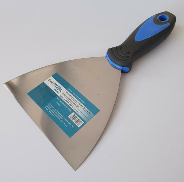 Rozsdamentes spakli, soft gumi nyéllel, melynek köszönhetően órák múlva is kényelmes a munkavégzés. Szélesség: 120 mm