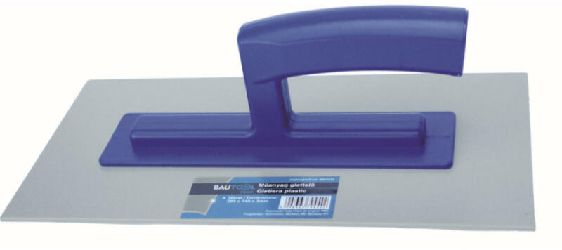 Műanyag glettelő, a homlokzati szín felhordása után szükséges simításhoz. Méretek: 280x140x3mm