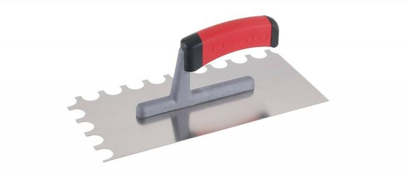 A termék leírása: Rozsdamentes acél simító Festa 280x130 mm, O16 fog, gumifogantyúval, lapvastagság 0,8 mm. Főleg ragasztók és burkolólapok, valamint esztrichek, stukkók, vakolatok, tömítőanyagok és egyéb építőanyagok felhordására használják. A rozsdamentes acél simítóval lehetővé teszi a ragasztó vagy az építőanyag nyújtását a csíkokban és a magasságban, a
