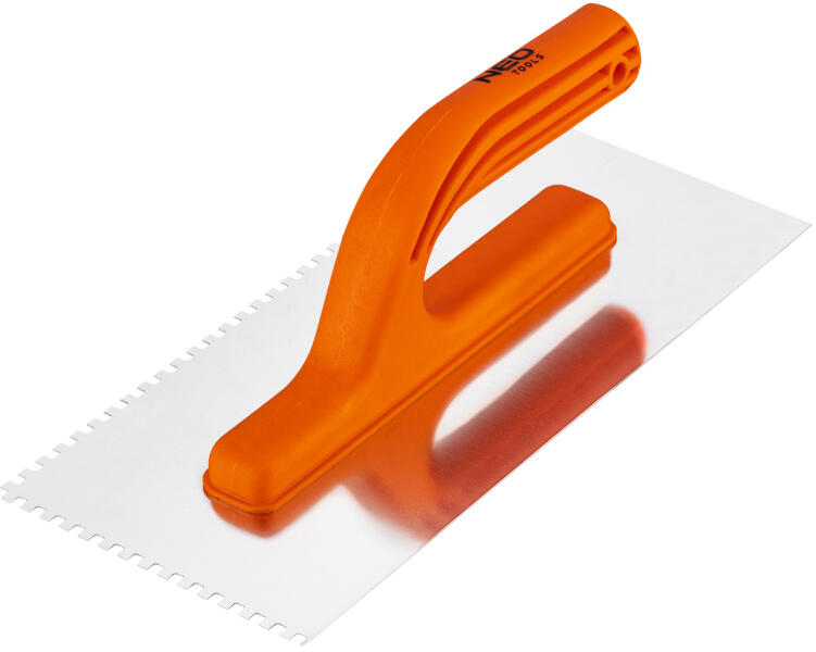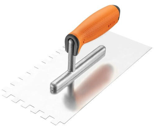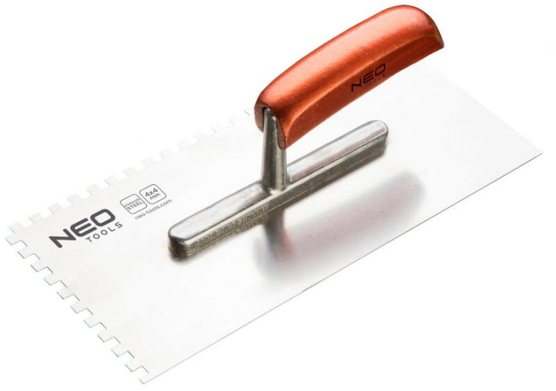 A NEO fogazott simító ragasztóhabarcsok felvitelére szolgál. Munkafelülete kiváló minőségű rozsdamentes acélból készül. A műanyagból készült ergonómikus markolat jól fekszik a tenyérben, növelve a munkavégzés kényelmét. A NEO márka a professzionális igényeket is kielégíti.