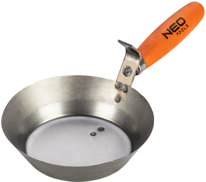 NEO Kőműves serpenyő (cikkszám: 50-252) kőműves munkákhoz, nagyobb mennyiségű habarcs felhordásához. Fémből, valamint a kézben jól illeszkedő fa markolatból áll. A NEO márka a professzionális igényeket is kielégíti. . Kőműves serpenyő, átmérője 170 x 120 x