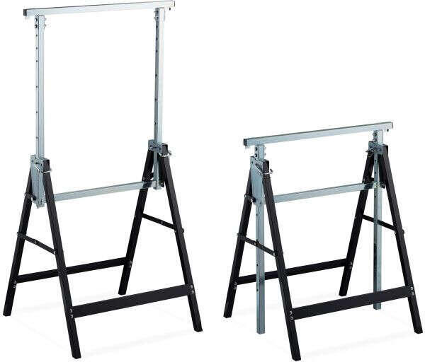 Professzionális munkaállvány műhelyekhez és építkezésekhez A praktikus 2 bak készlettel még hatékonyabbá teheted barkácsmunkádat. A munkaállványok ideálisak falécek fűrészeléséhez, festési munkákhoz és sok máshoz. Egyszerűen állítsa be a munkarudat a kívánt méretre, és rögzítse a biztonsági csavarokkal. Amikor egy munkalapot a munkapadra helyez, hajtsa fel a mun