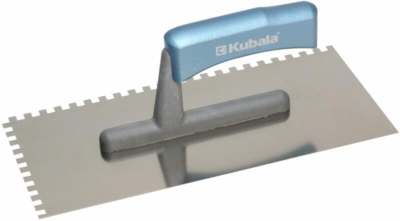 A KUBALA fogazott simító ragasztóhabarcsok hatékony felvitelére szolgál. Munkafelülete kiváló minőségű rozsdamentes acélból készül. A műanyagból készült ergonomikus markolat jól fekszik a tenyérben. A kényelemes markolatnak köszönhetően nem csak gyors, de precíz munkát is végezhet.