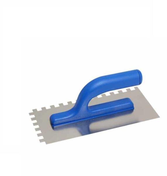 Jellemzők méretek 130x270mm anyaga rozsdamentes acél markolat ergonómikus műanyag fogazás 8x8mm alkalmazás ragasztó felhordás vastagság 0,7mm