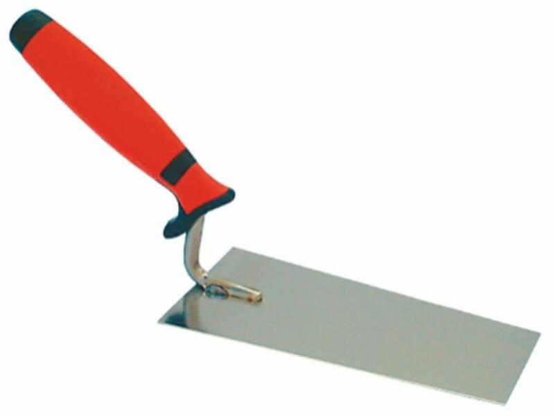 Rozsdamentes kőműveskanál, tartós és kényelmes gumimarkolattal. Méret: 140 mm