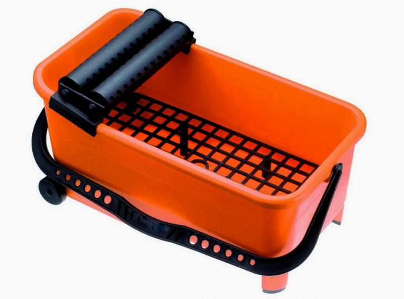 Tulajdonságok Strapabíró ütésálló polipropilén vödör erősített peremmel Megerősített műanyag fogantyú Hátsó kerekek a könnyebb mozgáshoz Tartozék: görgők + rács 15 literes vödör