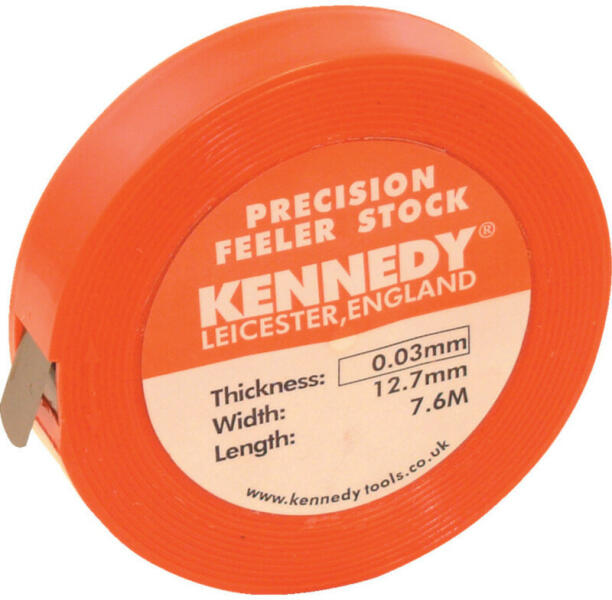 Műanyag letekercselhető dobozban, a szükséges hossz letéphető. Használható tűrések, illesztések beállításához, (pl. szelephézagok, szikraköz), készülék- és szerszámgyártásnál, munkadarabok, készülékek beállításánál alátétként stb. A legjobb minőségű megeresztett acélból készült, 150 mm-ként vonallal jelölve, vastagság század milliméterben jelölve. V