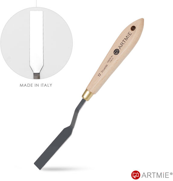 Spakli ARTMIE Scuola 17 Olaszországban gyártot ARTMIE festőspaklik egy új kiváló minőségű festőkések különféle típusban. Az új formák széles választéka különféle felhasználásokat tesz lehetővé, a vékony rugalmas pengéktől a kicsi, jól meghatározott részletekig egészen a szélestől a lekerekített élekig és speciális lapát formájú, amely segítségével a fe