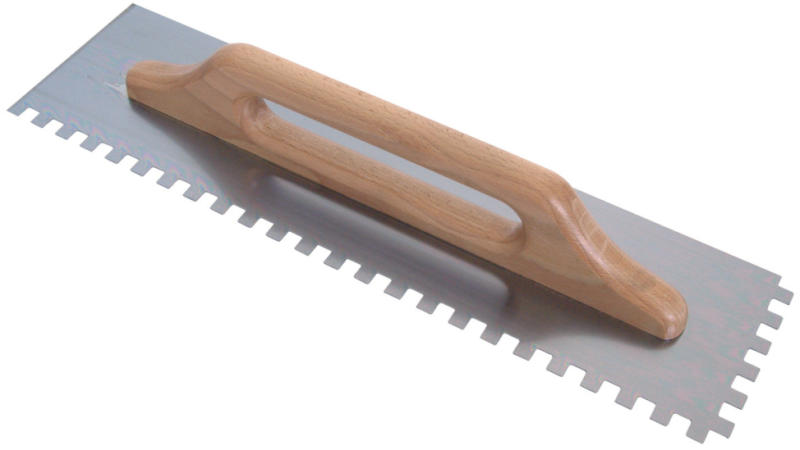Kiváló minőségű, Raimondi fogazott glettvas, ragasztók felhordásához, rozsdamentes bevonattal, lakkozott famarkolattal, melynek köszönhetően kevésbé csúszik ki a kézből, munkavégzés alatt. Terméktulajdonságok: Méretek: 48x12 cm Fogak mérete: 10x10 mm Súly: 600 gramm