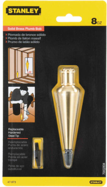 Építőipari polírozott, lakozott réz függőón Csavaros felső rész a könnyű zsinórhoz rögzítéshez Hosszú profilú acél csúcs (2darab) 225 gramm