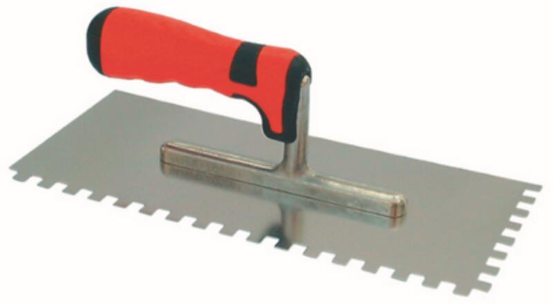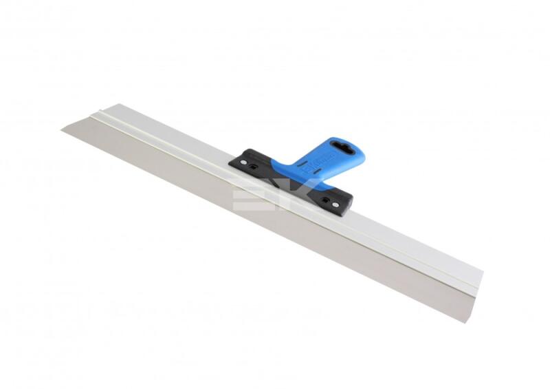 Építőipari befejező munkákhoz - rozsdamentes, saválló acél, vastagsága 0,5 mm - megerősített és tökéletesen egyenes munkaél, eloxált alumínium profilba ágyazásának köszönhetően - ergonomikus és profilozott 2K puha fogantyú