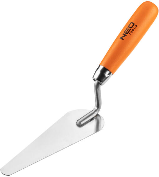 A NEO macskanyelv vakolókanál kisebb mennyiségű gipsz simítóvakolat, ragasztóhabarcs vagy malter felvitelére szolgál nehezen hozzáférhető helyekre. Kiváló minőségű rozsdamentes acélból készül. A fa markolat jól fekszik a tenyérben, növelve a munkavégzés kényelmét. A NEO márka a professzionális igényeket is kielégíti.