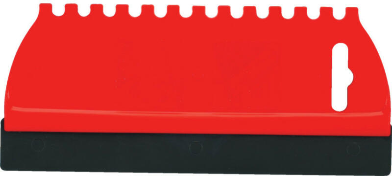 Műanyag simítószerszám. A fogazott él csempe/ járólapragasztó egyenletes elterítésére szolgál. A flexibilis éllel a fölösleges habarcs távolítható el.