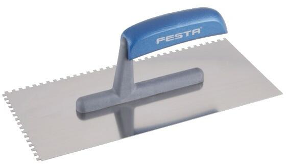 FESTA Fogazott glettvas 130 x 280 mm inox 4 x 4 mm műanyag nyéllel