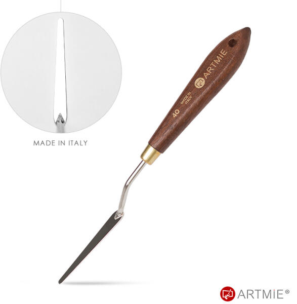Spakli ARTMIE Pastrello 40 Olaszországban gyártot ARTMIE festőspaklik egy új kiváló minőségű festőkések különféle típusban. Az új formák széles választéka különféle felhasználásokat tesz lehetővé, a vékony rugalmas pengéktől a kicsi, jól meghatározott részletekig egészen a szélestől a lekerekített élekig és speciális lapát formájú, amely segítségével a