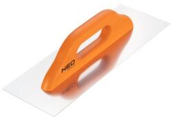 A Neo fogazott simító ragasztóhabarcsok felvitelére szolgál. Munkafelülete kiváló minőségű rozsdamentes acélból készül. A műanyagból készült ergonómikus markolat jól fekszik a tenyérben, növelve a munkavégzés kényelmét. A Neo márka a professzionális igényeket is kielégíti. Fogazott simító, műanyag markolat, munkafelülete rozsdamentes acél, 270 x 125 mm
