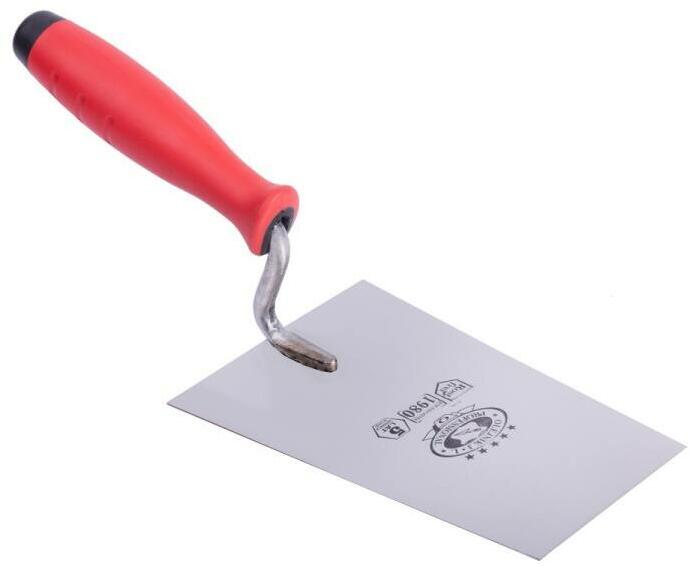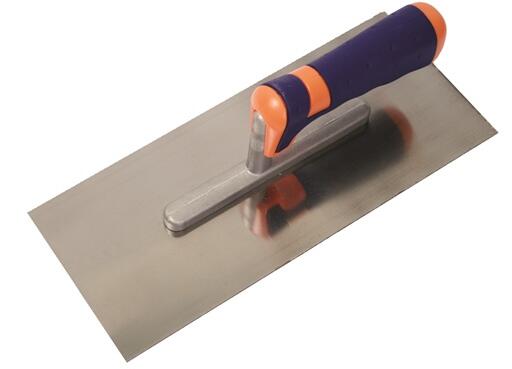Saválló, rozsdamentes acél - lemezvastagság: 0,7 mm - ergonómikus és profilozott 3K gumirozott nyéllel (G-21) - gipsz, habarcs, ragasztó felhordásához valamint hőszigetelési munkákhoz