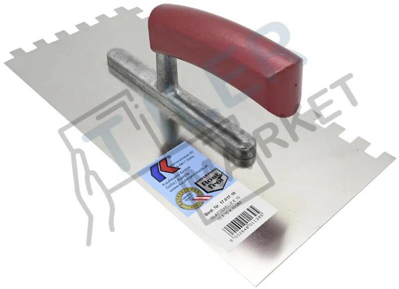 Kaufmann simító 10x10 mm-es fogakkal. Méretek: 28 x 13 cm; Ref: 17.017. 10