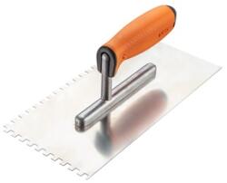 A TOPEX fogazott simító ragasztóhabarcsok felvitelére szolgál. Munkafelülete kiváló minőségű rozsdamentes acélból készül. A műanyagból készült ergonómikus markolat jól fekszik a tenyérben, növelve a munkavégzés kényelmét. A TOPEX márka ezermestereknek készül. Fogazott simító, Műanyag markolat, Munkafelülete rozsdamentes acél, 280 x 130 mm