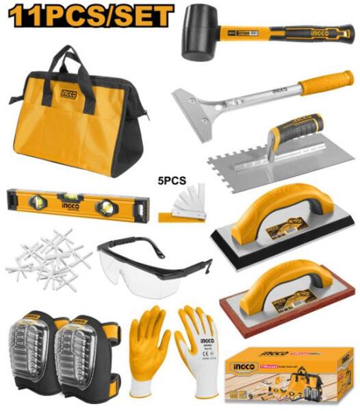 Tartalom: 1 db gumikalapács 1 db fém kaparó 5 db SK5 késsel 1 db fogazott glettvas 280 x 130 mm 1 db gumis simító 240 x 100 mm 1 db gumis simító 230 x 100 mm 1 db vízmérték 40 cm 1 db védőszemüvegek 1 db szerszámostáska 400 mm / 16" 1 pár nitril kesztyű 1 pár térdvédő 250 db csempekereszt