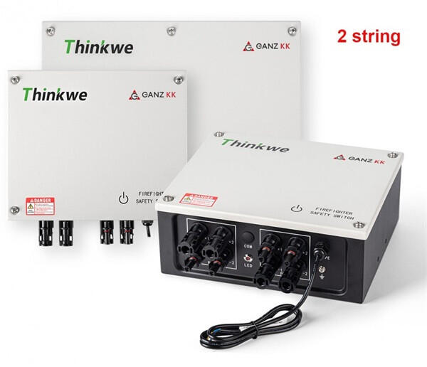Ganz TW-RSD150-40-2 napelemhez 1000VDC/40A, 2 string tűzeseti DC leválasztó kapcsoló Tulajdonságok 2 string Max. 40 A Max. 1500 V DC CE bizonylat IP65 védettség & UV álló Távműködtetés applikáció segítségével – opcionális Visszajelzés lekapcsolásról 70 °C felett automatikus lekapcsolás Mechanikai élettartam: 10 000 kapcsolás Tanúsítás CE, CB, TUV SAA szerint