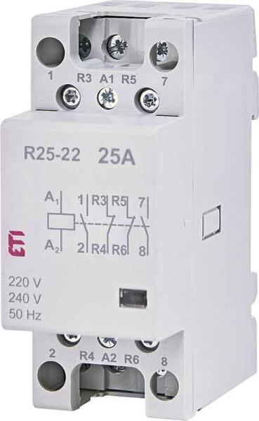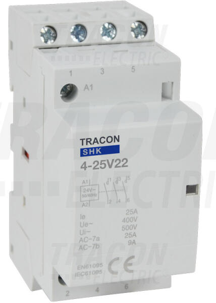 SHK4-25V22 Installációs kontaktor 230V AC, 50Hz, 2 Mod, 2×NO+2×NC, AC1/AC7a, 25A 230V AC, 50Hz, 2 Mod, 2×NO+2×NC, AC1/AC7a, 25A