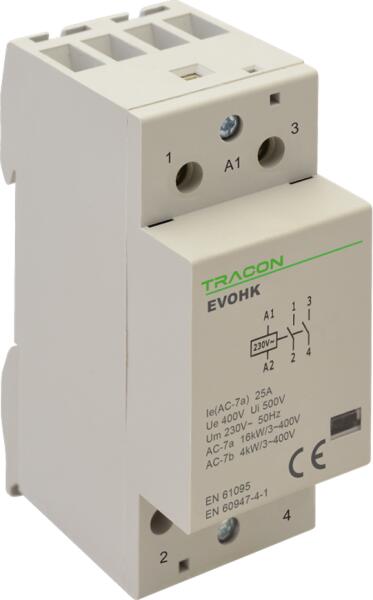EVOHK2-100 Installációs kontaktor 230V, 50Hz, 3 Mod, 2×NO, AC1/AC7a, 100A, 230V, 50Hz, 3 Mod, 2×NO, AC1/AC7a, 100A,