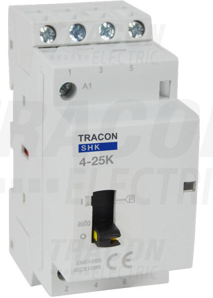 SHK4-25K Installációs kontaktor 230V AC, 50Hz, 2 Mod, 4×NO, AC1/AC7a, 25A 230V AC, 50Hz, 2 Mod, 4×NO, AC1/AC7a, 25A