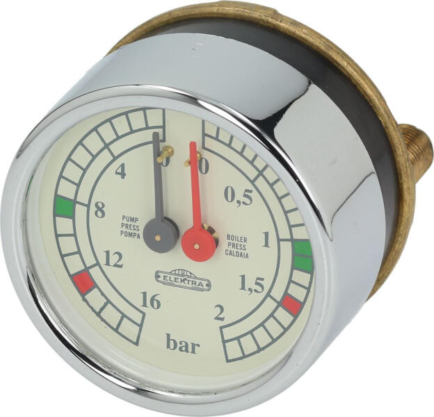 kettős skála 0÷2/0÷16 bar - csatlakozások ø 1/8'M | perem ø 60 mm - test ø 60 mm Az alábbi típusokhoz: Kávégép BARLUME, CLASSIC, SIXTIES