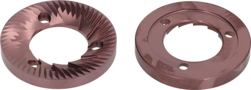 ŐRLŐK 'PIROS SEBESSÉG' speciális nagy tartósságú acél | 20%-kal hosszabb élettartam a TITÁN őrlőkhöz képest | külső ø 74 mm - belső ø 38 mm | vastagság 9 mm - 3 rögzítő furat Az alábbi típusokhoz: Kávédaráló MYTHOS (201903-), MYTHOS ONE 2019, MYTHOS-ONE (201910-)