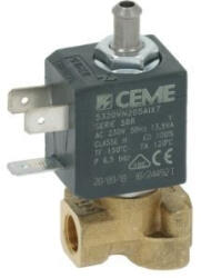 5320 - leeresztő ø 6 mm - csatlakozók ø 1/8'FF | FKM tömítés - nyílás ø 2.0 mm - max 6,5 bar | B4 tekercseléssel 13.5VA 230VAC 50Hz | folyadék hőmérséklet -10°C+140°C | SGL ROTARYCAPSBASE-ROTARYLUXCAPS-hoz | LAVAZZA ESPRESSOPOINT-MATINEE-PININFARINA-hoz