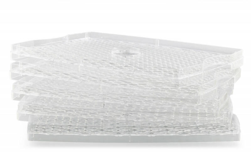 Pótlemezek a Paradiso big gyümölcsaszalóhoz Ez a szett a G21 Pradiso Big gyümölcsaszaló praktikus kiegészítője. A szett 5 téglalap alakú tálcából áll. Ne keressen kifogásokat, ha a gyümölcsaszalójába pótlemezeket keres. Ez biztosan passzolni fog. Egyszerű karbantartás A lemezek tartós és minőséges műanyagból készültek és tapadásmentesek, használat után az elöbl