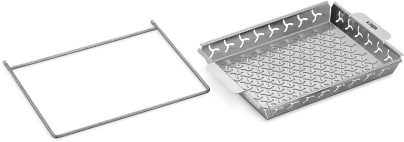 JELLEMZŐK A kosárkeret beakasztható az emeletes többsoros grillezőrendszerbe, növelve a grillfelület kapacitását Ideális zöldségek és kisebb húsok számára A kosár önmagában is használható a sütőrácson