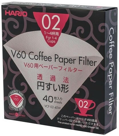 Egy csomag papírszűrő a V60 csepegtetőkhöz. Ezek a szűrők kompatibilisek a 02-es típussal (1-4 csésze). 100% oxigénnel fehérített papírpépből készültek. Csomagolás: 40 db. Gyártó: Hario (Japán)