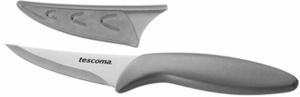 Konyhai kés rozsdamentes acél pengével védőtokban a biztonságos szállítás és tárolás érdekében. Első osztályú rozsdamentes acélból készült, a nyél és a tok ellenálló műanyagból. Mosogatógépbe alkalmas. Gyermekektől elzárva tartandó. 3 év garancia.