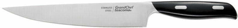 A GrandCHEF kések nyelének és pengéjének összekapcsolása sima, túlnyúlásoktól mentes, az átmenet folyamatos. A kés fogása optimálisan illeszkedik a feldolgozni kívánt élelmiszerhez, a szeletelés gyors, kényelmes és biztonságos. Első osztályú kovácsolt acélból készült kés. 5 év garancia.