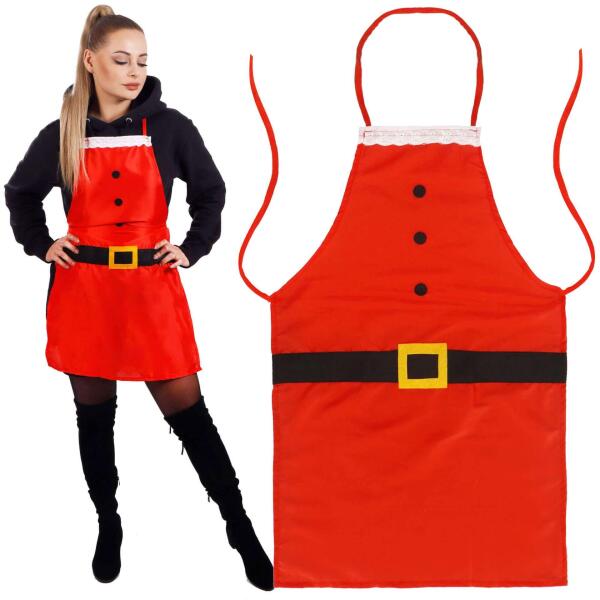 Márka: SpringosDesign: ünnepiSzín: piros, feketeAnyag: nemez anyagA kötény magassága: kb. 75 cmA kötény szélessége: kb. 50 cmA nyakba akasztható zsinórhurok hossza: kb. 50 cmA hátra köthető zsinór hossza: kb. 52 cm.